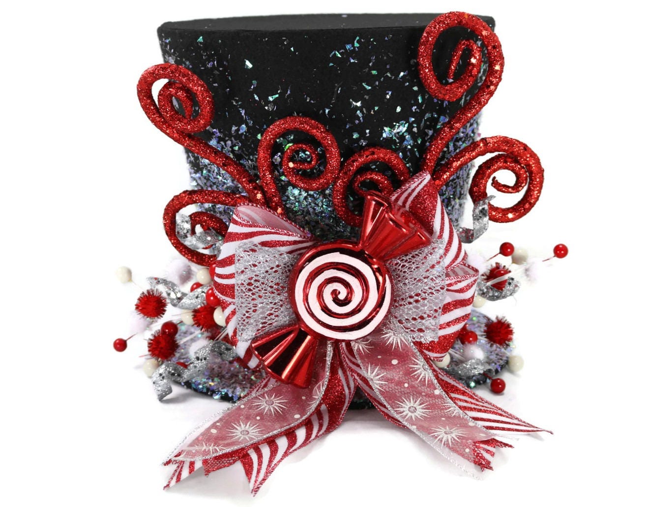 Christmas tree topper ,Top hat tree topper, Christmas table decoration, Silver white and Red Christmas decoration