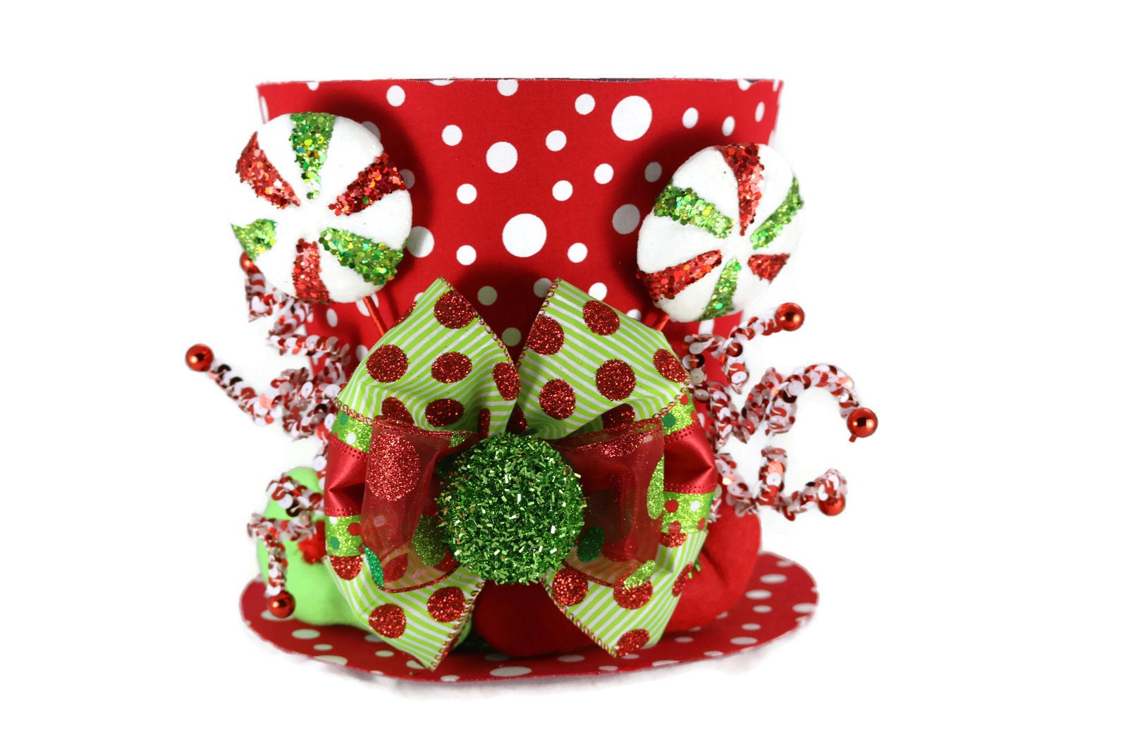 Elf theme tree topper, Elf Christmas decoration, Elf shoes and peppermint theme tree topper, Christmas top hat tree topper